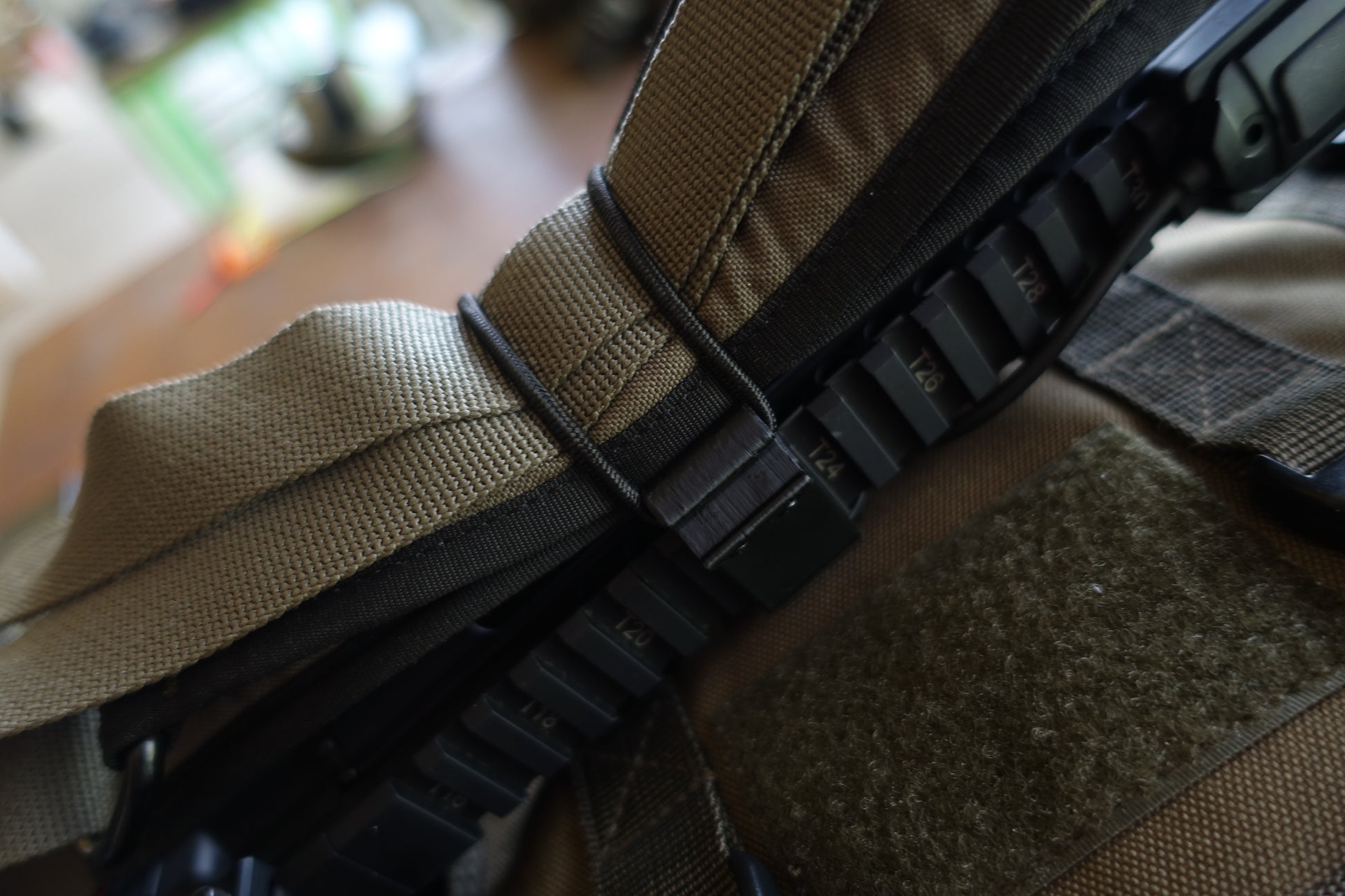 Une corde élastique (shockcord) de 3 mm maintient votre sangle bien plaquée contre le rail. Moins d’accrocs, plus de fluidité lors du transport, des transitions ou du rangement.