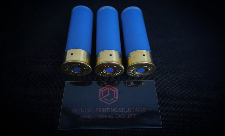 - Identifiant de sécurité : trou de 2 mm à la base du culot pour garantir qu'il s'agit de munitions inertes et étuis bleui pour ne pas les confondre lors du contrôle de chambre